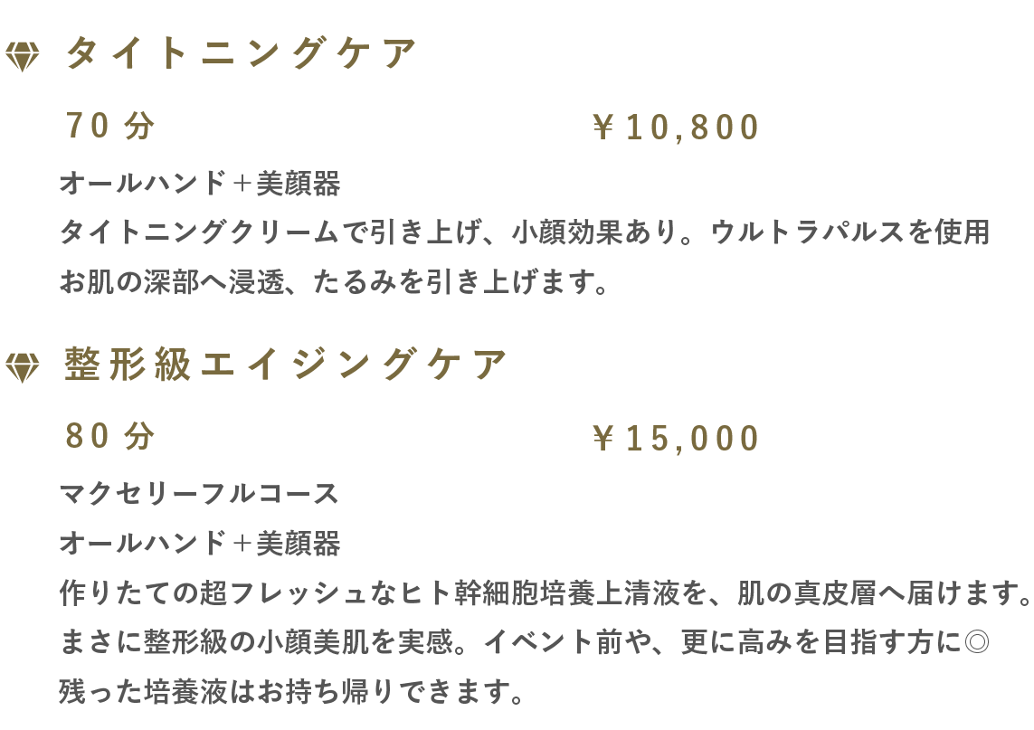 | 施術同日特典(オプション) | ¥2,500(¥1000off) |